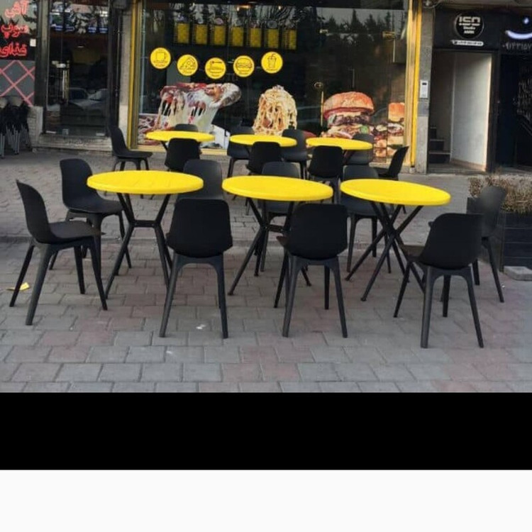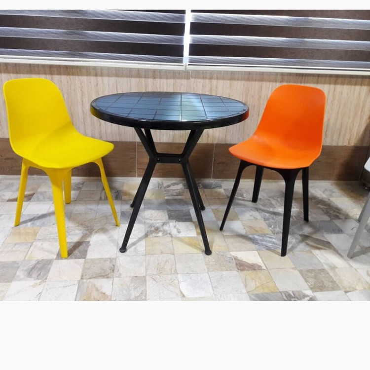 صندلی تمام فایبر شرکتی نشکن با ضمانت در رنگ های مختلف ومیز گرد و مربع سرامیکی خوشگل بدون واسطه از تولید کننده خرید کن قیمت برای ست ۴ نفره با میز
